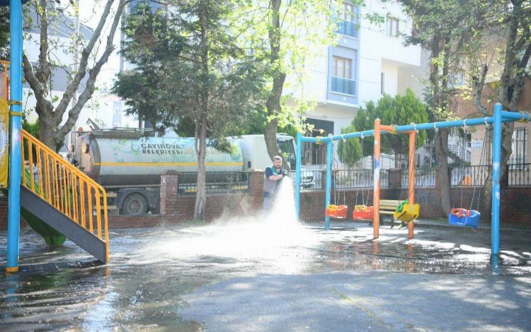 Çayırova Belediyesi’nin saha ekipleri Ramazan Bayramı öncesinde, ilçe genelinde çalışmalarına tüm hızıyla devam ediyor. Bahar aylarının gelmesiyle birlikte ilçenin yeşil alanlarında mevsimlik budama çalışmalarını gerçekleştiren Park ve Bahçeler Müdürlüğü, Ramazan Bayramı öncesinde, ilçe genelindeki tüm parklarda bayram temizliği gerçekleştiriyor. Ekipler, ilk olarak ilçedeki parklarda kaba temizlik yaparken, daha sonra arazözle birlikte ilçedeki parkları yıkayarak temizliyor. Yapılan bu çalışmalarla Ramazan Bayramı boyunca özellikle Çayırovalı çocuklar ve gençler tarafından yoğun olarak kullanılacak parkların daha temiz olması amaçlanıyor.
