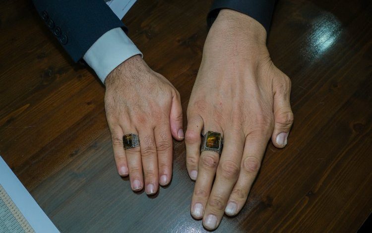 Özel olarak Sultan Kösen için yüzüğü tasarlayan Özcoşar, dünyanın en büyük ellerine sahip Sultan’a üniversitemiz atölyelerinde yapılan telkâri yüzüğün çok yakıştığını söyledi.