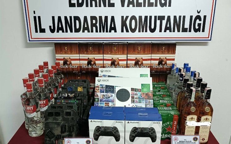 Edirne İl Jandarma Komutanlığı, sorumluluk bölgesinde kaçakçılıkla mücadeleye aralıksız devam ederken son operasyonda, gümrük kaçağı oyun konsolları, alkollü içkiler ve araç sigorta panelleri ele geçirildi.