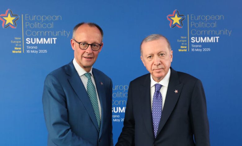 Cumhurbaşkanlığı İrtibat Başkanlığından Cumhurbaşkanı Erdoğan’ın Avrupa Siyasi Topluluğu 6. Tepesi kapsamında Almanya Başbakanı Merz ile görüşmesine ait açıklama yapıldı.