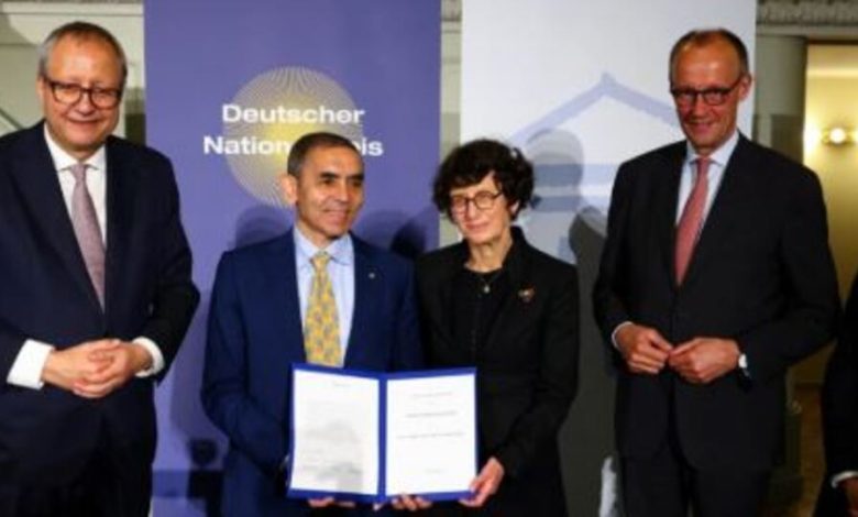 Modern tıbbın iki öncüsü olarak Şahin ve Türeci’ye “2025 Alman Ulusal Ödülü” verildiğini tabir eden Merz, “Sürekli belirsizliğe gerçek yürekle ilerlemenizi onurlandırıyoruz” dedi.