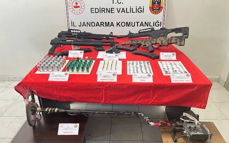 4 adet ruhsatsız av tüfeği, 1 adet ruhsatsız 7,65 mm çapında tabanca, 58 adet av tüfeği kartuşu, 20 adet 7,65 çapında tabanca fişeği, 6 adet şarjör bulundu.
