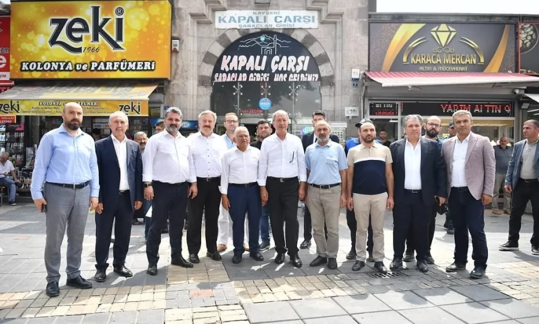 Kayseri Büyükşehir Belediye Başkanı Dr. Memduh Büyükkılıç, öğle namazını Camikebir’de kıldıktan sonra, TBMM Milli Savunma Komisyonu Başkanı ve AK Parti Kayseri Milletvekili Hulusi Akar, AK Parti İl Başkan Fatih Üzüm ve Melikgazi Belediye Başkanı Mustafa Palancıoğlu beraberinde tarihi Kapalı Çarşı ve çevresindeki esnaf ile buluştu. Sıcak ve samimi geçen buluşmada esnafa hayırlı işler ve bereketli kazançlar temennisinde bulunan Büyükkılıç, çarşıdaki vatandaşlarla da kucaklaşarak sohbet etti, fotoğraf çekindi.