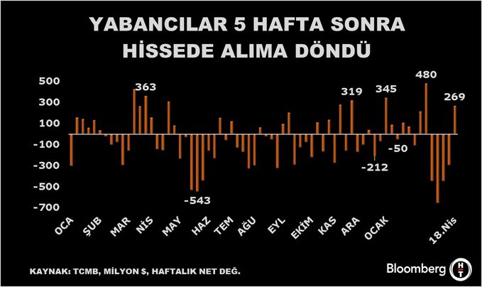 Türkiye Cumhuriyet Merkez Bankası(TCMB) tarafından açıklanan bilgilere nazaran, yurt dışında yerleşik bireyler piyasa fiyatı ve kur hareketlerinden arındırılmış bilgilerle 18 Nisan haftasında 269,1 milyon dolar net pay alışı yaptı.