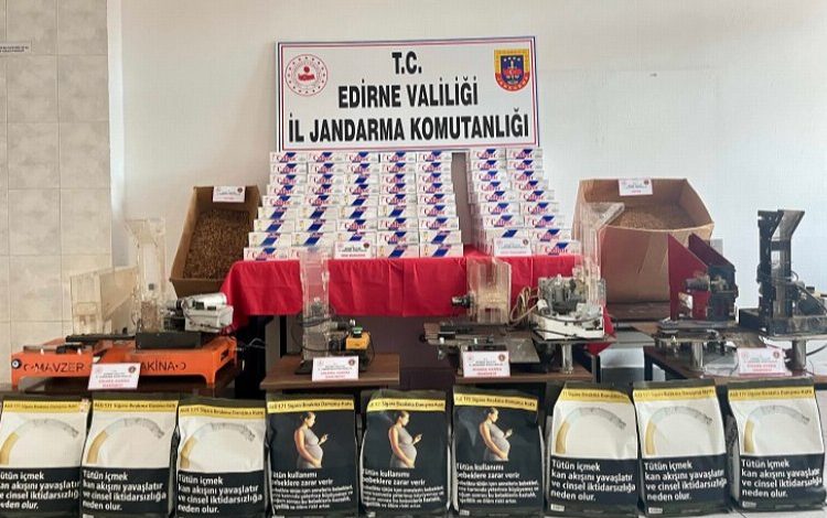 Erdoğan DEMİR / EDİRNE (İGFA) –Uzunköprü İlçe Jandarma Komutanlığı JASAT dedektifleri, alınan istihbari bilgiler doğrultusunda, ilçede faaliyet gösteren iki şüphelinin ikamet adreslerinde arama yaptı. Aramada, 18.440 adet içi tütün doldurulmuş makaron, 38.000 adet boş makaron, 8 kilogram açık tütün, 12 kilogram kapalı tütün ve 4 adet elektrikli otomatik sigara sarma makinesi ele geçirildi.