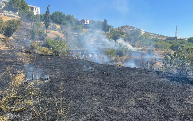 Ev sahipleri ise damda kendi imkanları ile yangın söndürme çalışması yapıyor. Yangında yaklaşık 50 dönüm araz zarar gördüğü ifade edildi. İtfaiye ekipleri bölgede yangını söndürmek için ekipler çalışmalarını sürdürüyor.